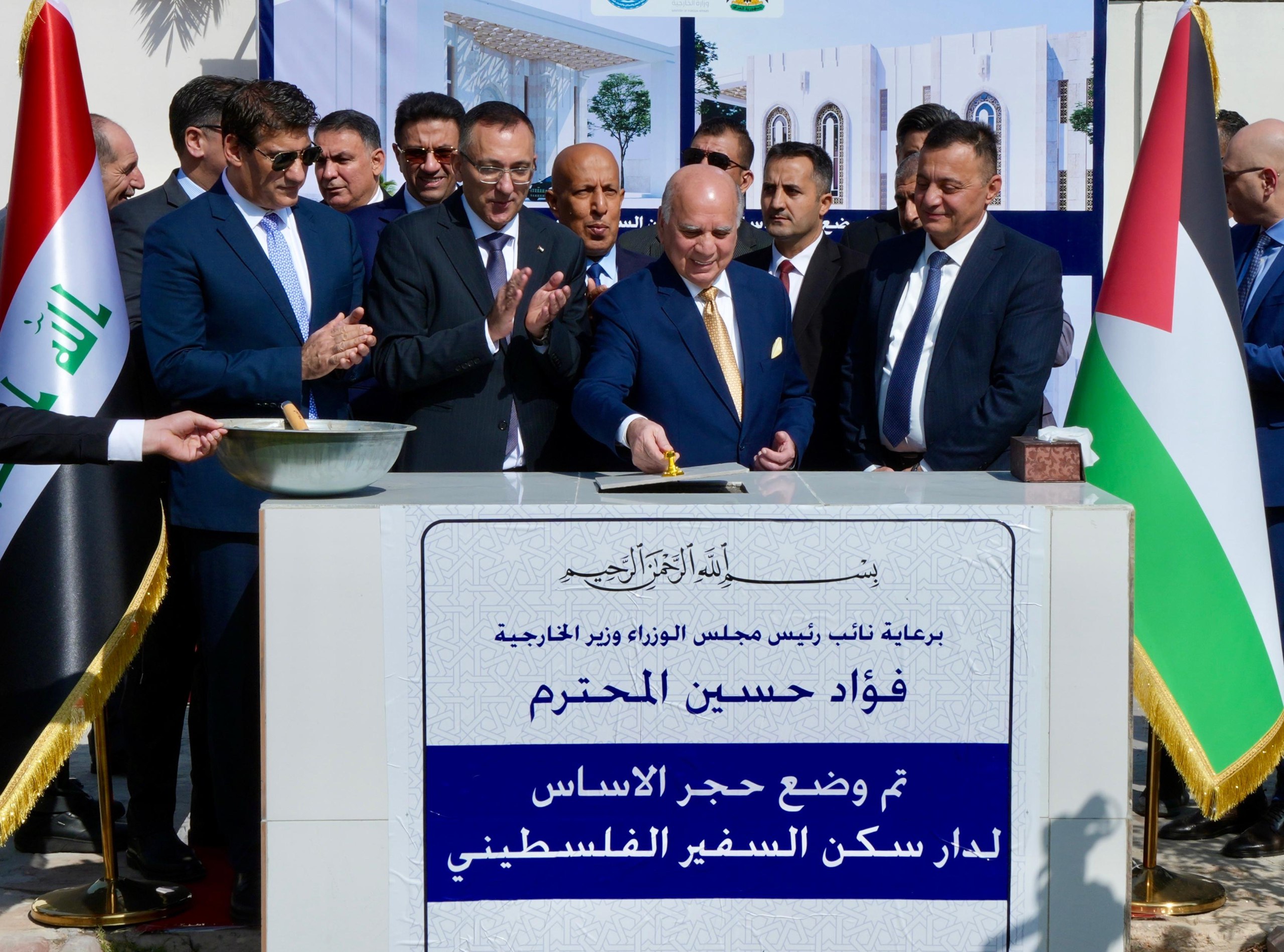 بالصور || العراق يجدد دعمه لفلسطين ويضع حجر الأساس لدار السفير في بغداد