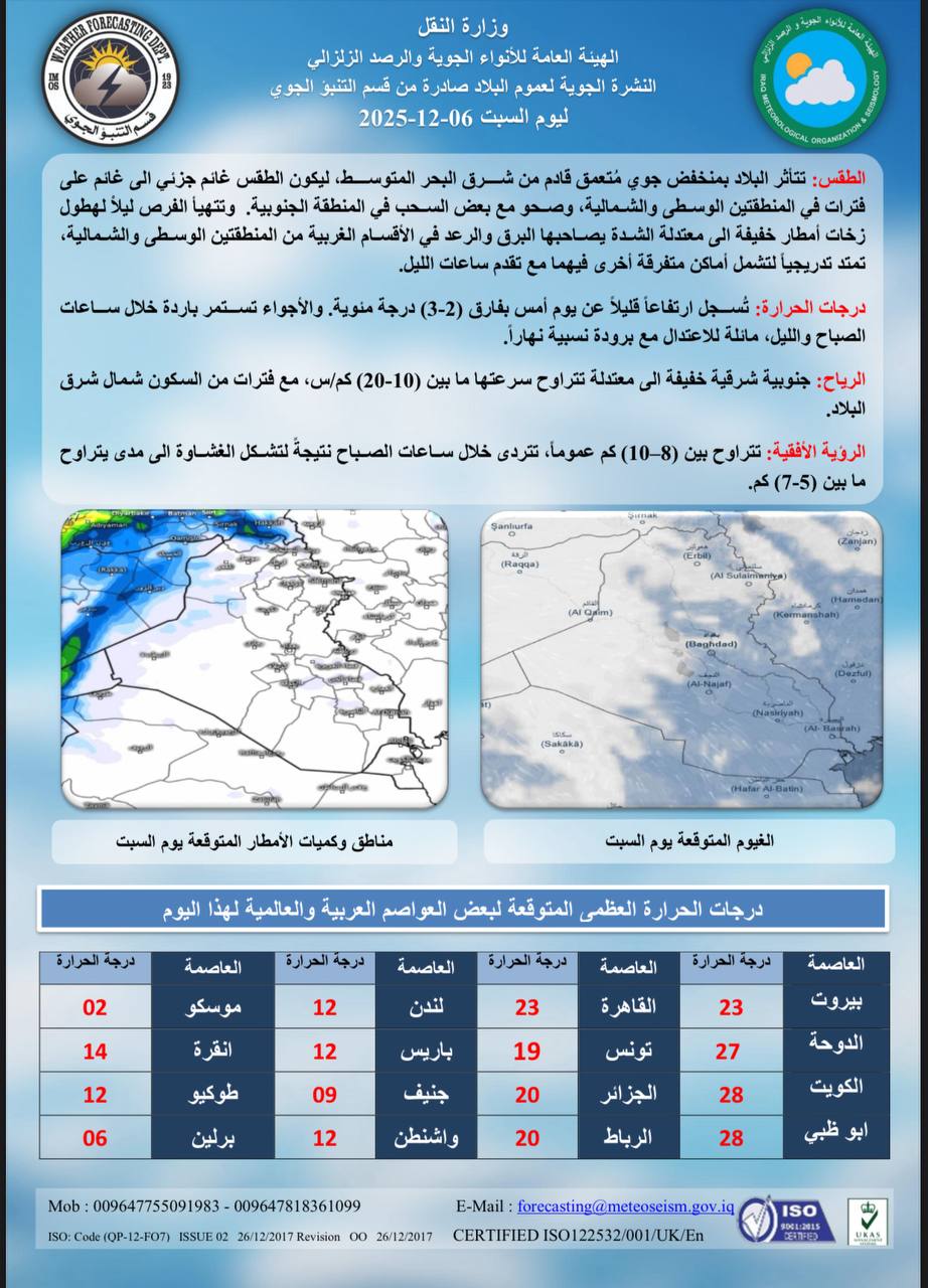 الاخبار منوعات منخفض جوي عميق يقترب من كردستان.. أمطار غزيرة وثلوج ابتداءً من الغد 6 ديسمبر، 2025 9:24 صباحًاشارك القصة منخفض جوي عميق يقترب من كردستان.. أمطار غزيرة وثلوج ابتداءً من الغد الخط مقالات جديدة الشيخ أكرم الكعبي: تباً للمعايير الأخلاقية الازدواجية للغرب خريجي جزيرة إبستين الذين يجعلون الباطل حقاً والحق باطلاً شطرنج البحار وصدام الإرادات: لغز “إسلام آباد” وطبول حرب الناقلات إيران تتمسك بمواقفها في عودة المفاوضات أنقرة تفضح جرائم الاحتلال وتكسر جدار الصمت الغربي سماحة الشيخ أكرم الكعبي: السياسة الأمريكية هي نريكم ما نرى ونعرفكم ما نعرف أسعار صرف الدولار في بغداد والبصرة وأربيل اليوم الثلاثاءمقالات عشوائية برنامج ورتل | معاني الصبر في الشهر الفضيل منظمة الفضاء الايرانية تعلن إطلاق القمرين الصناعيين “هدهد وكوثر” إلى الفضاء بنجاح برنامج شبابنا | الغرب يخسر امام فطرة الانسان النادي الملكي يحدد موعد ضم ألفونسو ديفيز الحصاد الإخباري 17/ 01 / 2022 فَانتَقَمْنَا مِنَ الَّذِينَ أَجْرَمُوا ۖ وَكَانَ حَقًّا عَلَيْنَا نَصْرُ الْمُؤْمِنِينَ